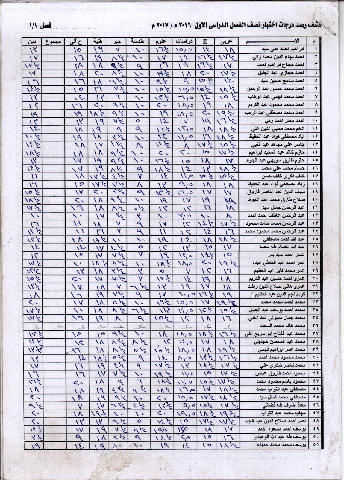 نتيجة الميد تيرم للفصل الدراسى الأول 2016-2017 فصل 1/1