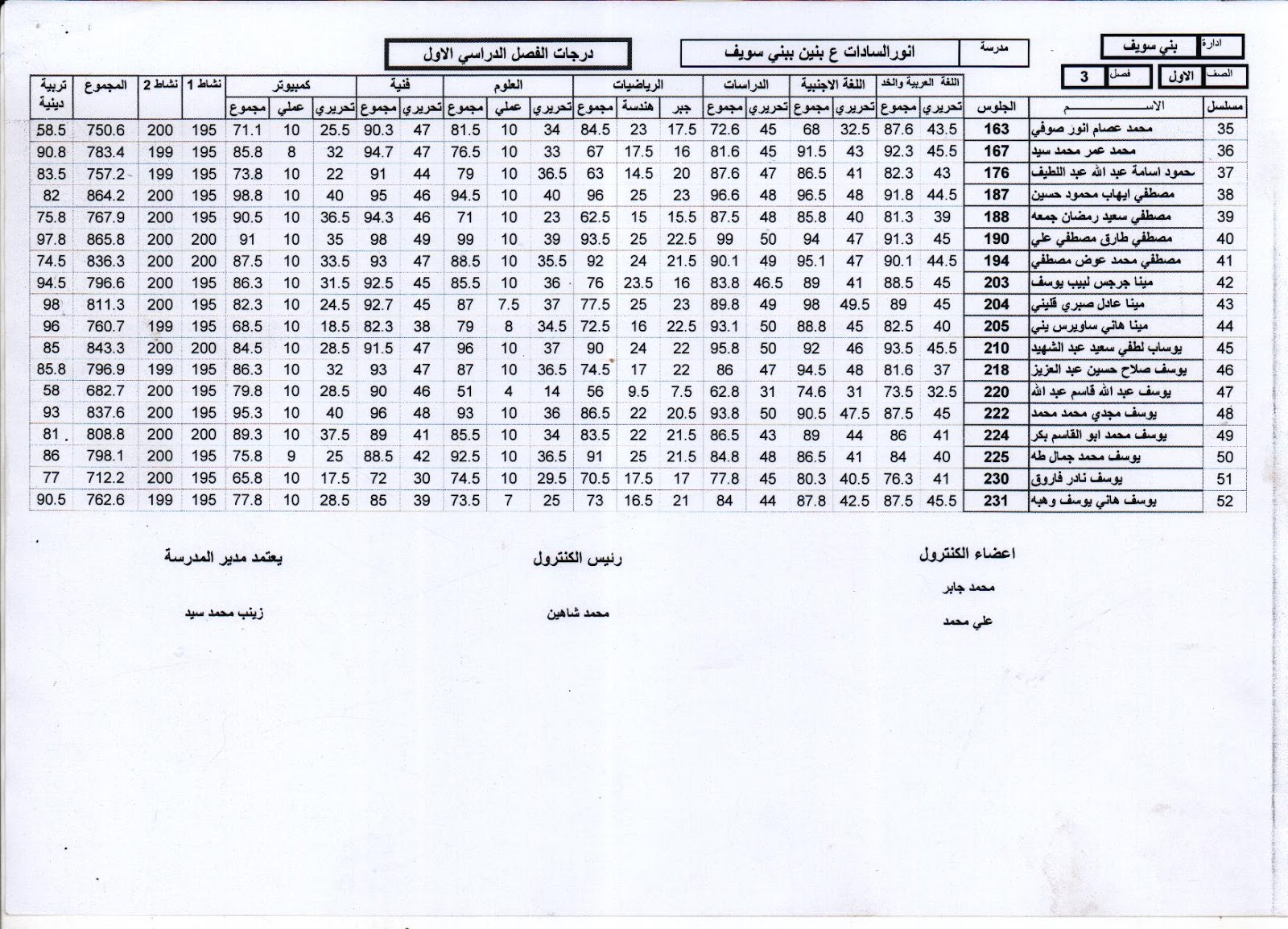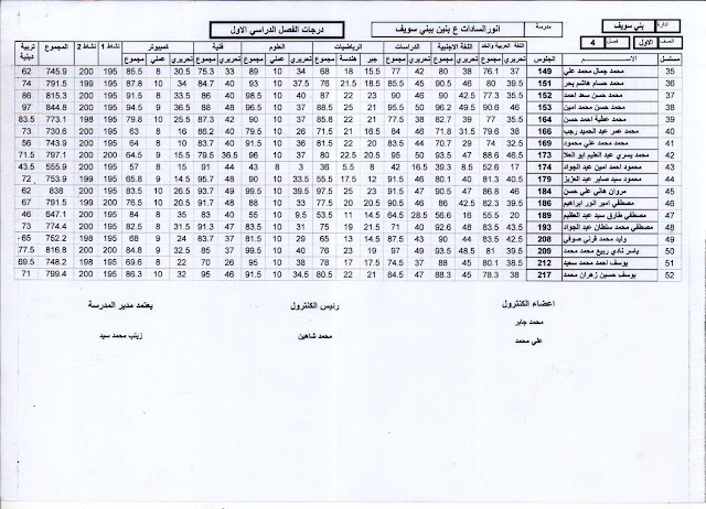 نتيجة الصف الأول الإعدادى للفصل الدراسى الاول 2016/2017