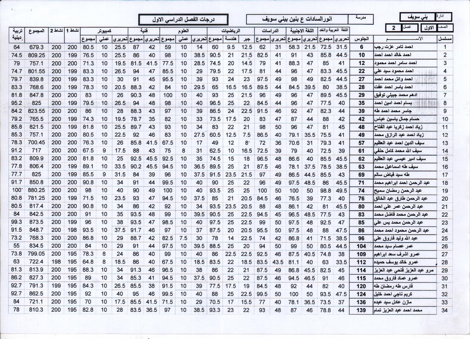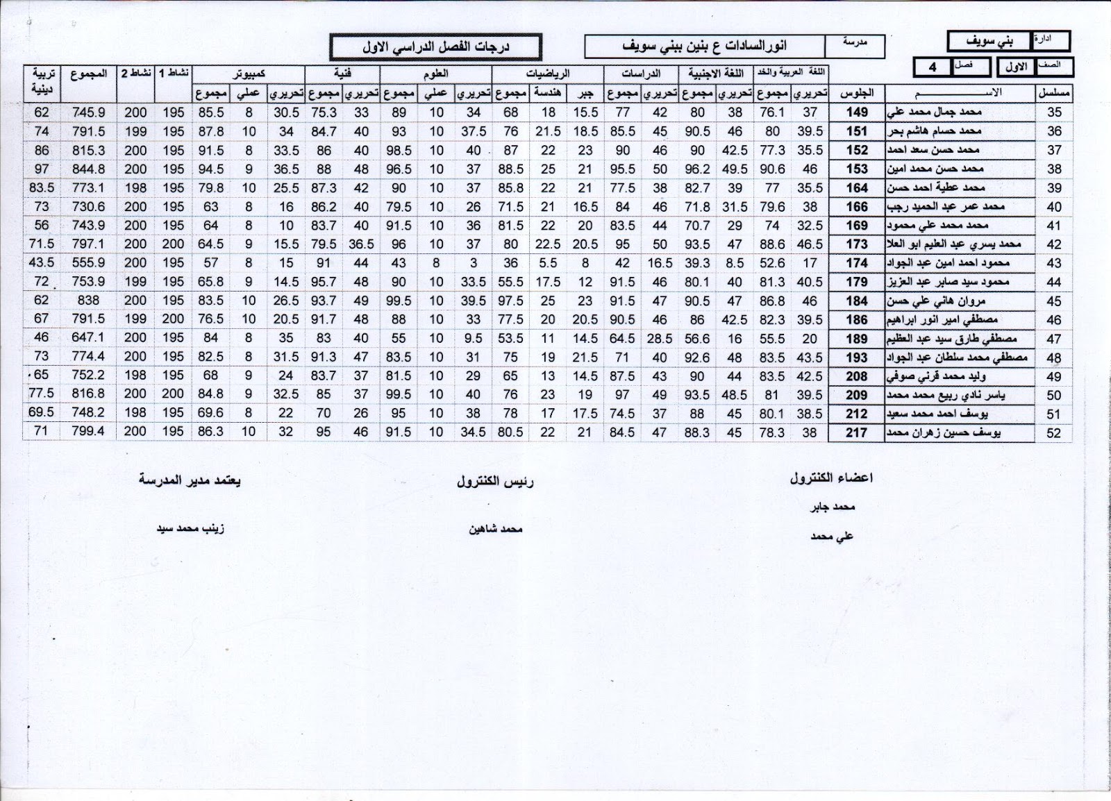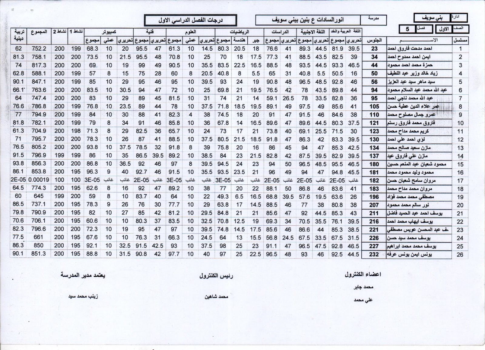 ننشر لطلابنا الاعزاء والسادة أولياء الامور نتائج إمتحانات الفصل الدراسى الأول للصف الأول الاعدادى من واقع قاعدة بيانات رصد نتائج الإمتحانات وتتمنى ادارة المدرسة وفريق العمل النجاح والتميز الدائم لابناءنا الطلاب وتتقدم باجمل التهانى للسادة اولياء الامور .