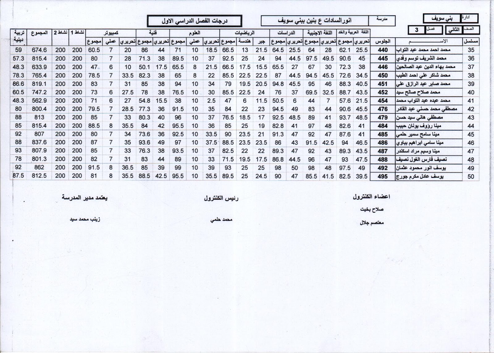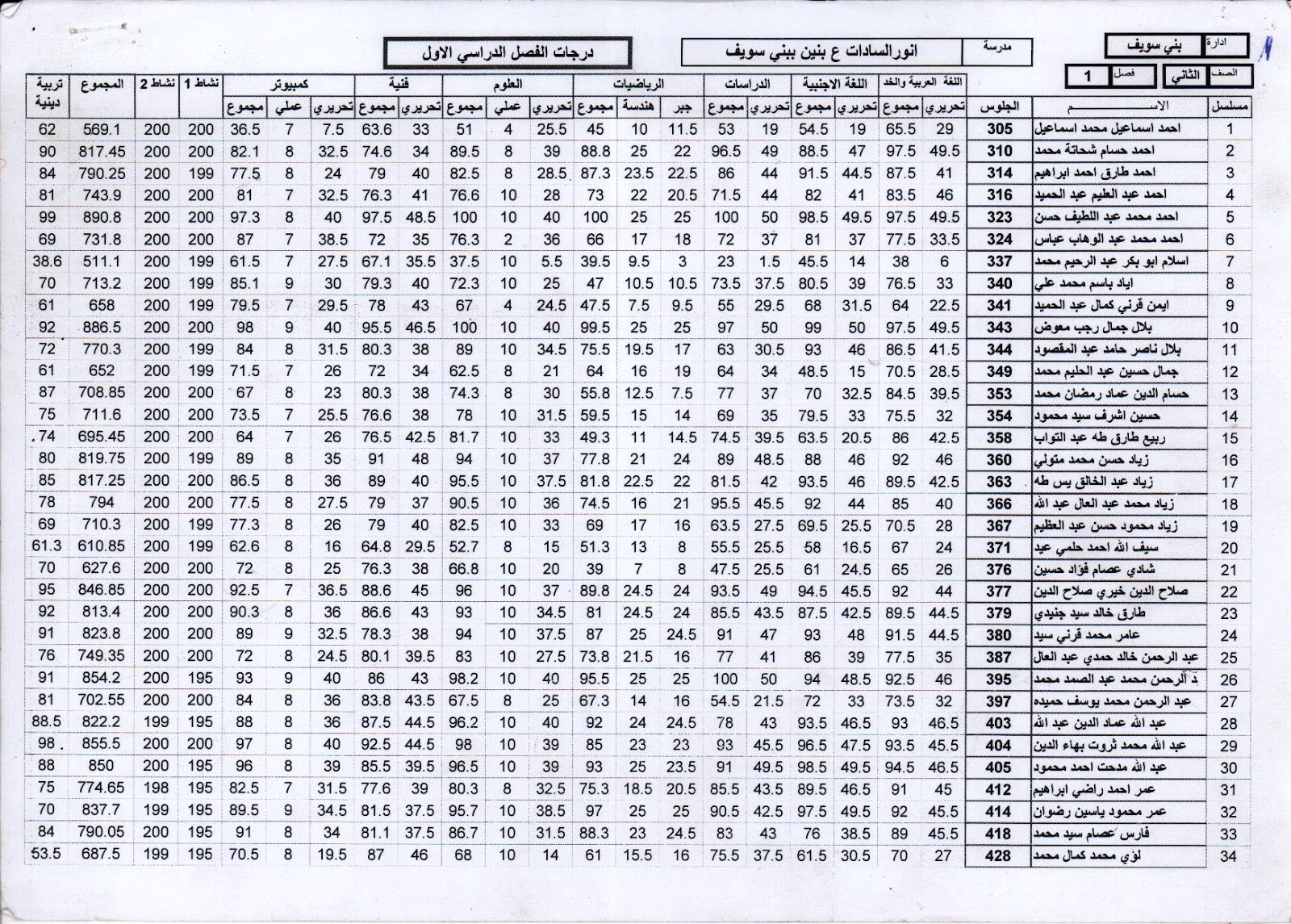 نتيجة الصف الثانى الإعدادى للفصل الدراسى الاول 2016/2017