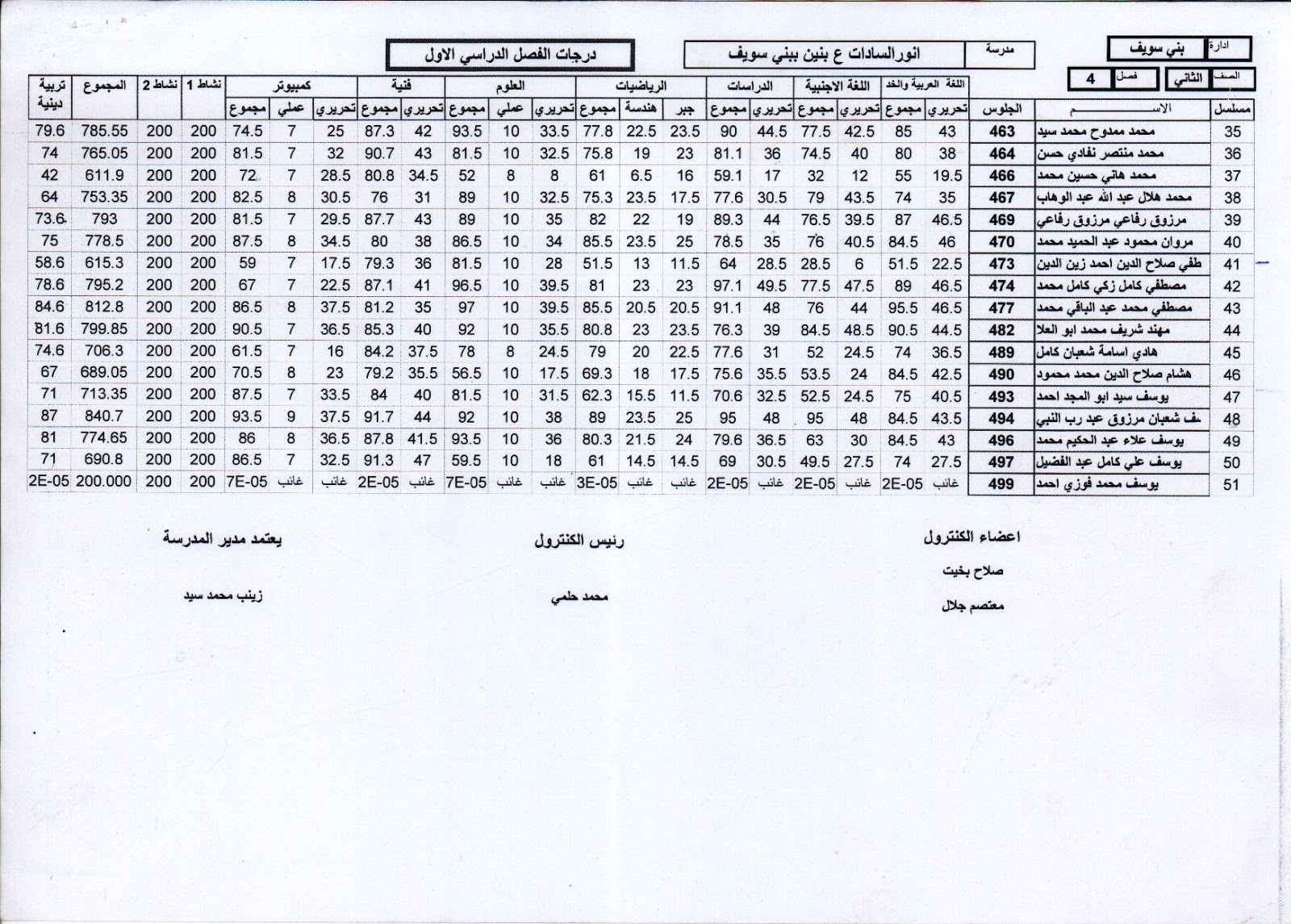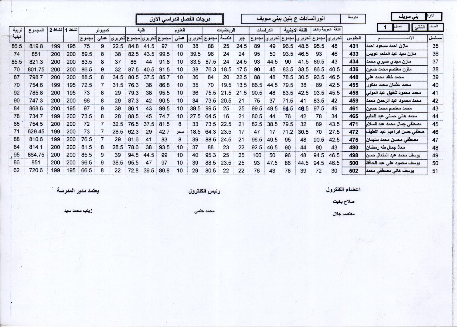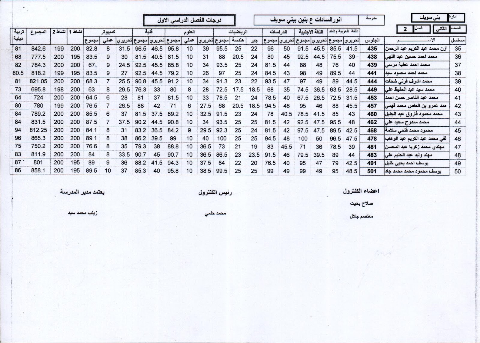 ننشر لطلابنا الاعزاء والسادة أولياء الامور نتائج إمتحانات الفصل الدراسى الأول للصف الثانى الاعدادى من واقع قاعدة بيانات رصد نتائج الإمتحانات وتتمنى ادارة المدرسة وفريق العمل النجاح والتميز الدائم لابناءنا الطلاب وتتقدم باجمل التهانى للسادة اولياء الامور .